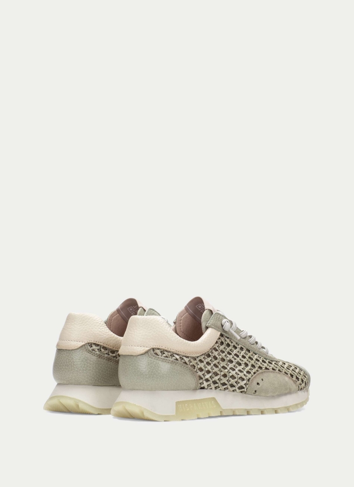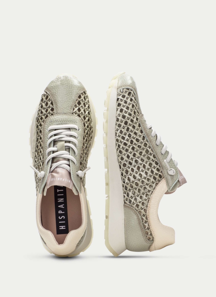 These green women’s sneakers Hispanitas blend sporty aesthetics with refined urban elegance. The woven texture adds lightness and distinctive character, while the mix of natural leather and modern detailing creates a sophisticated yet dynamic look.