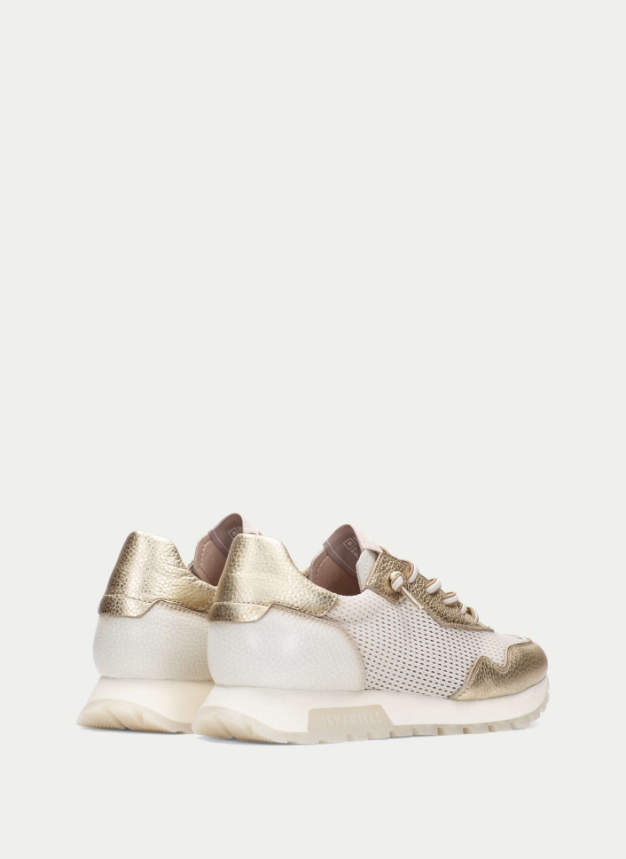 Добавете стилен акцент към визията си с тези впечатляващи дамски златни сникърси Hispanitas. Комбинацията от дишаща мрежеста структура и металически златни кожени панели създава перфектен баланс между спортна функционалност и елегантен блясък.