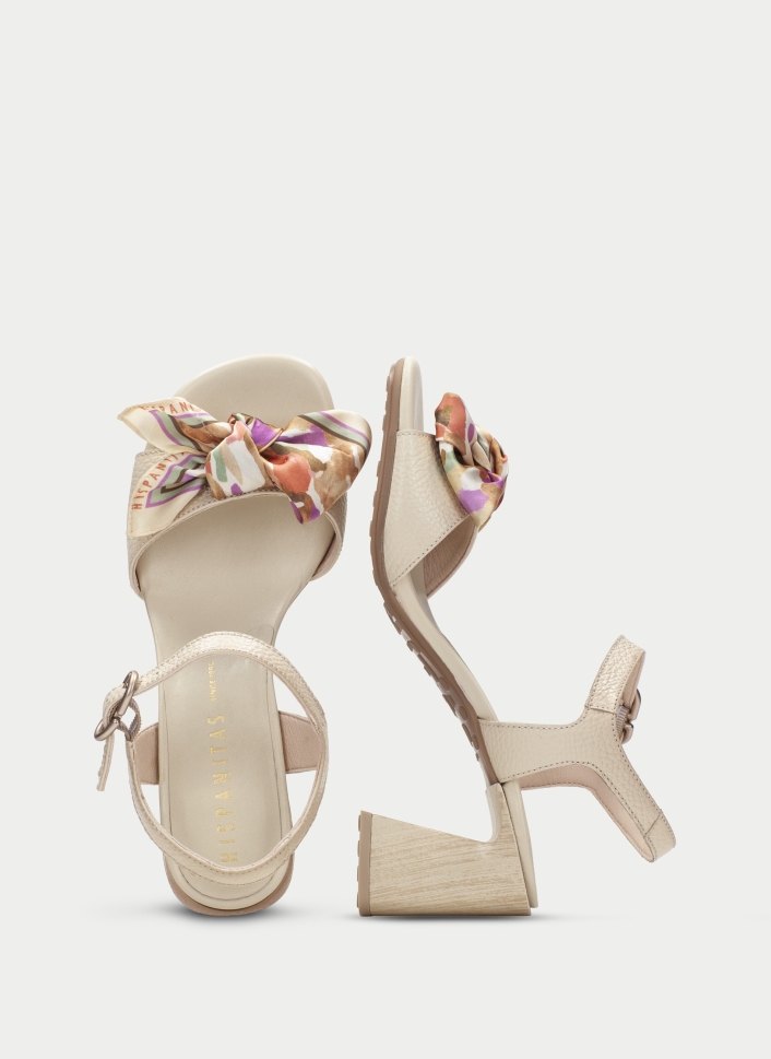 Beige Sandals Hispanitas – Elegant Leather Sandals with Block Heel and Statement Bow Detail