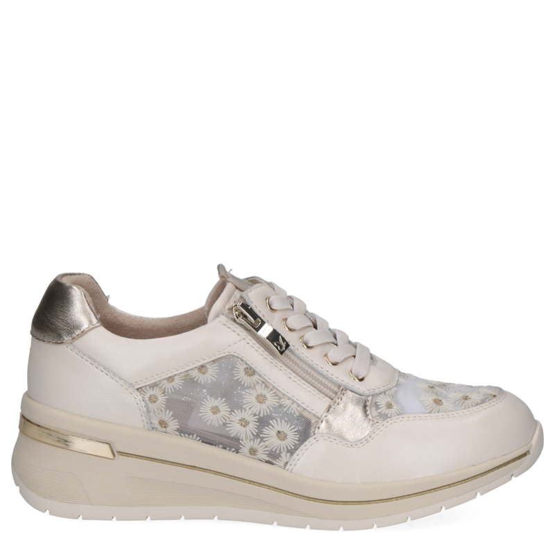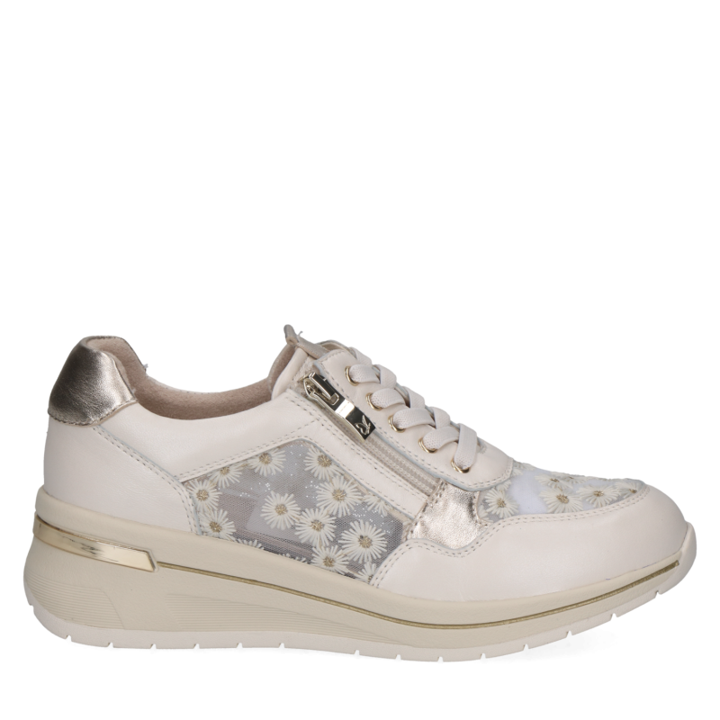 Елегантни бели сникърси от Caprice, изработени от естествена кожа и фин текстил с флорален акцент. Анатомичната подметка осигурява комфорт през целия ден, а дизайнът прави тези бели сникърси идеални както за ежедневието, така и за по-елегантни визии.