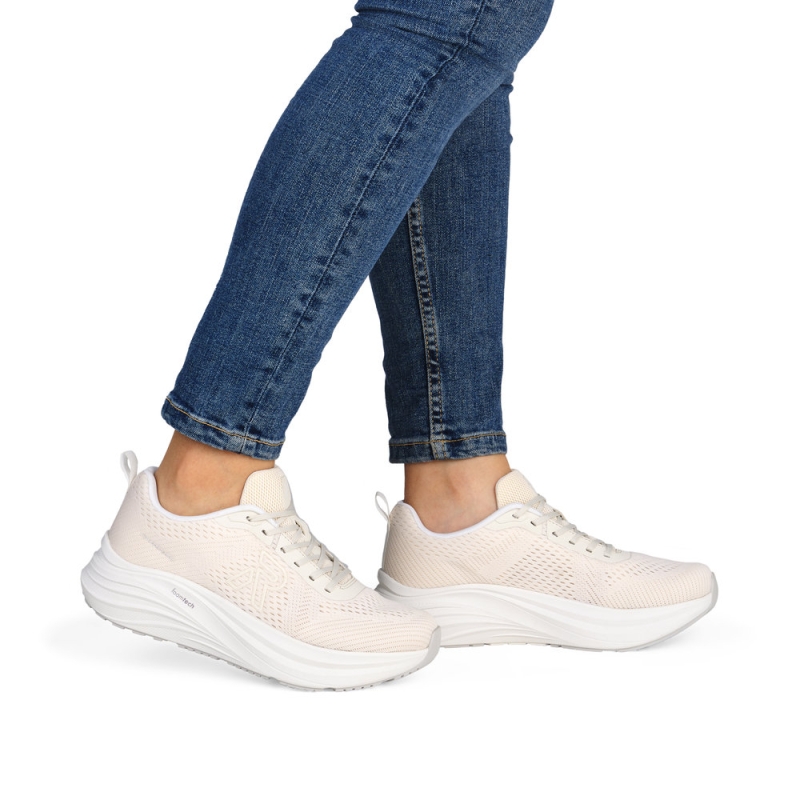 Модерни дамски сникърси, изработени от висококачествена еко кожа с фина текстура, които съчетават комфорт, стабилност и стилна визия. Нежният неутрален цвят в комбинация с бежови акценти прави модела изключително лесен за комбиниране както с ежедневни, така и със спортно-елегантни визии.