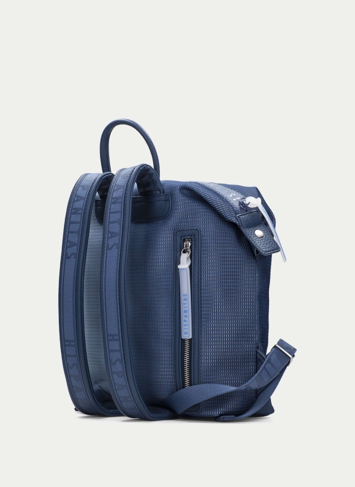 Логото е дискретно позиционирано, а металните елементи са елегантно завършени, което подчертава високия стандарт на синя дамска раница Hispanitas.