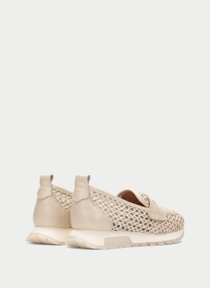 Дамски кремави мокасини Hispanitas се отличават с висококачествени материали и прецизна изработка, които гарантират дълготрайност и устойчивост. Горната част на дамски кремави мокасини Hispanitas е създадена с внимание към детайла, като плетената текстура придава уникален и отличителен вид. Тези дамски бежови мокасини Hispanitas позволяват на крака да диша, което ги прави перфектни за пролетно-летния сезон. Освен това, дамски бежови мокасини Hispanitas са изключително леки, което ги прави удобни за продължително носене без усещане за умора.